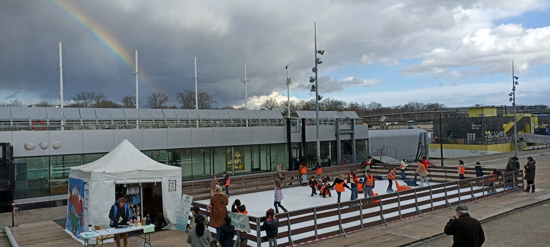 L'amicale des locataires du Quai de la Gare et l'association Vivre le nouveau 13e renouvellent l'installation de la patinoire éphémère sur les quais du 13e arrondissement.
